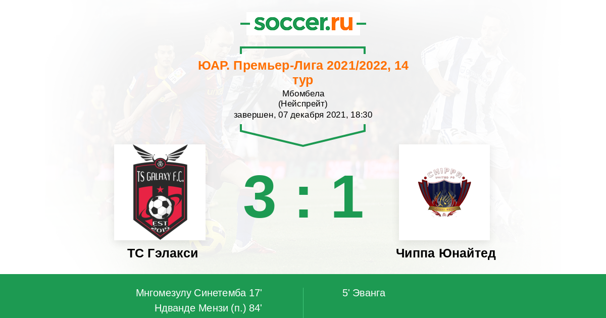 Протокол матча ТС Гэлакси против Чиппа Юнайтед
