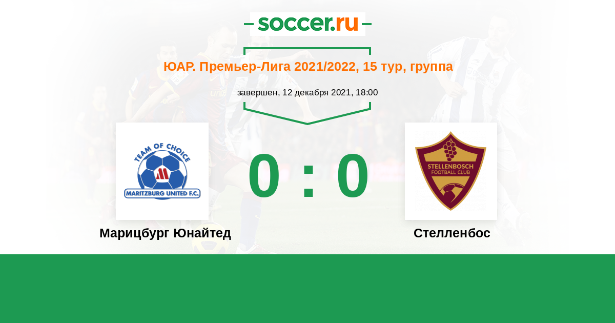 Протокол матча Марицбург Юнайтед против Стелленбос