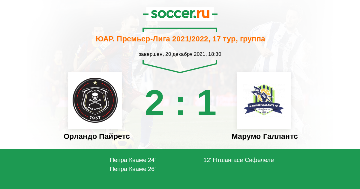 Протокол матча Орландо Пайретс против Марумо Галлантс