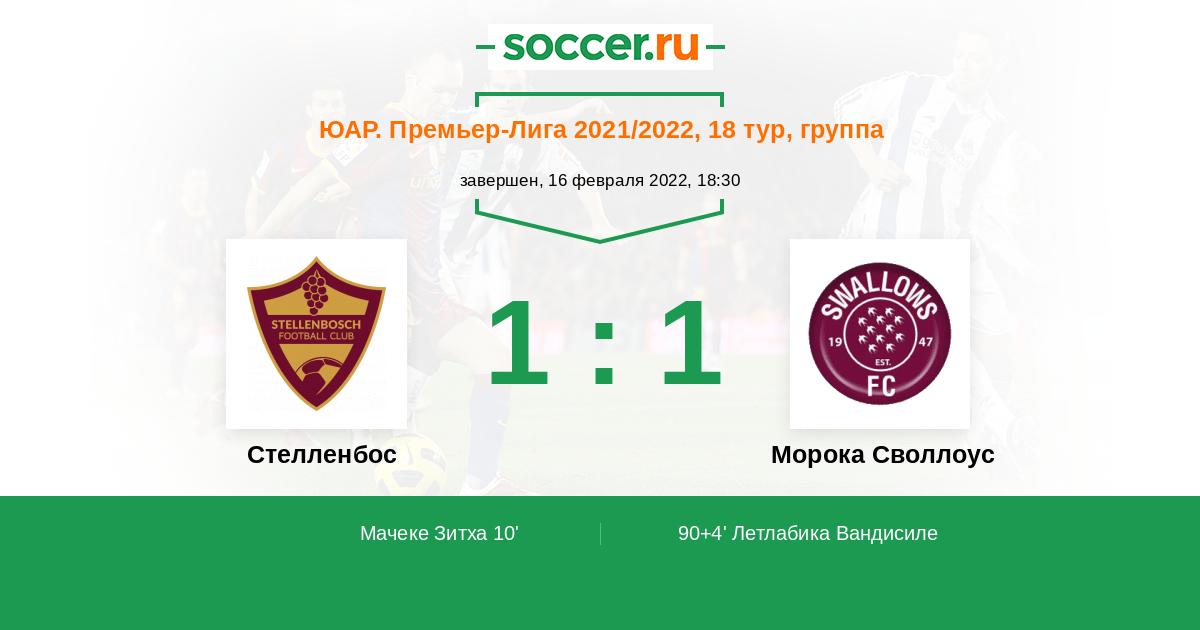 Протокол матча Стелленбос против Морока Своллоус
