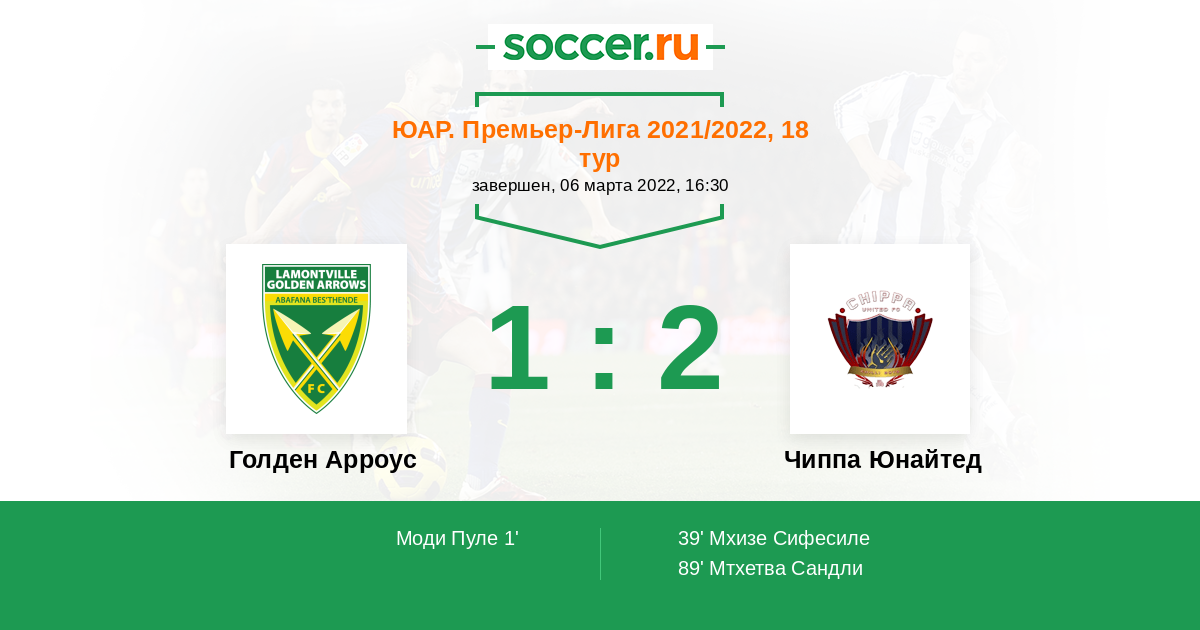 Протокол матча Голден Арроус против Чиппа Юнайтед