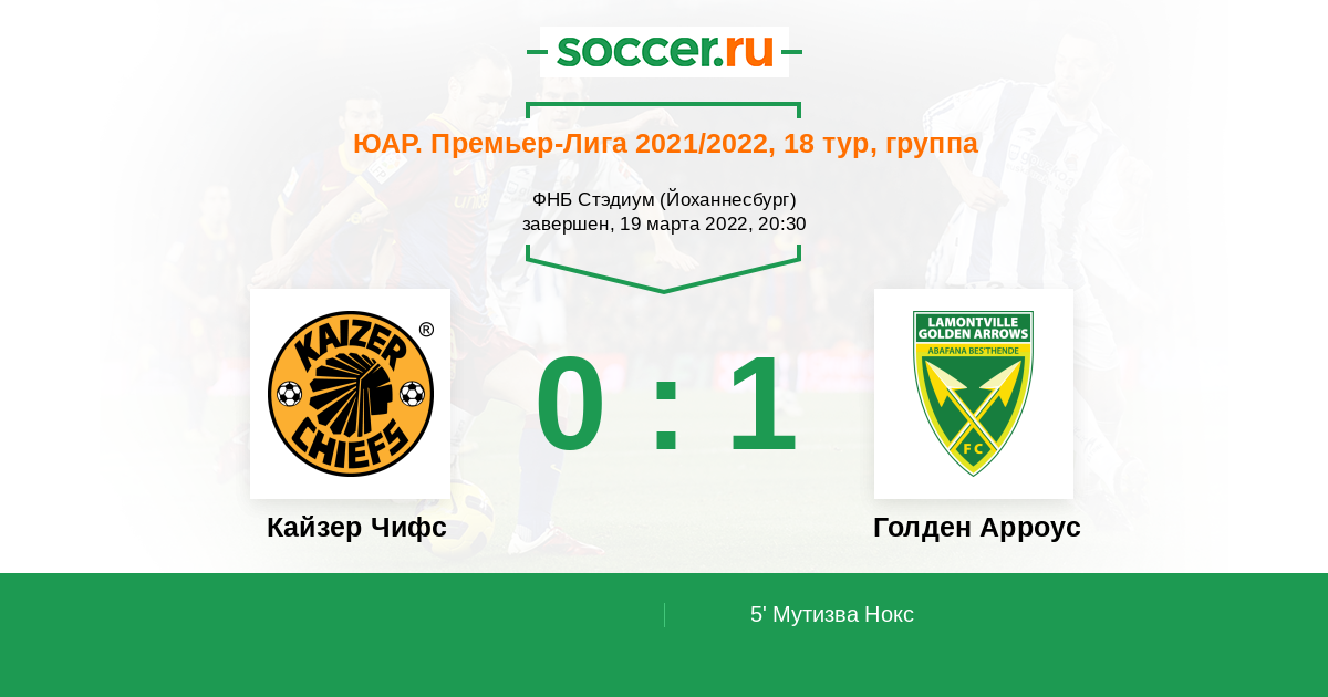 Протокол матча Кайзер Чифс против Голден Арроус