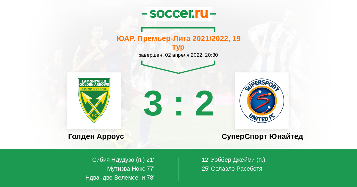 Протокол матча Голден Арроус против СуперСпорт Юнайтед