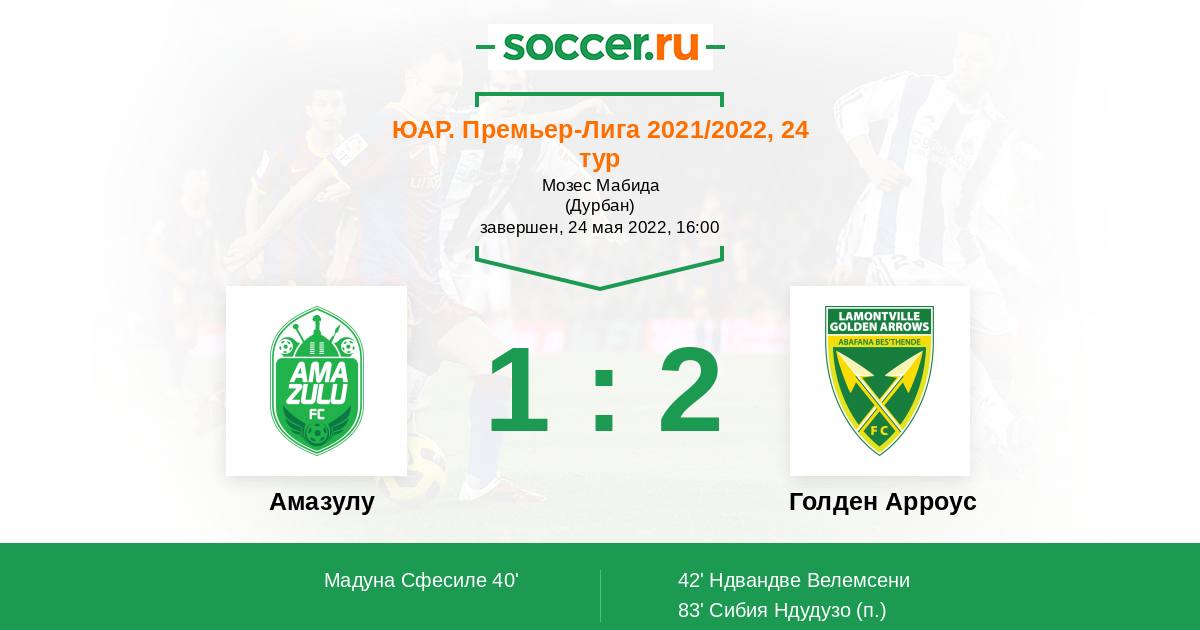 Протокол матча Амазулу против Голден Арроус