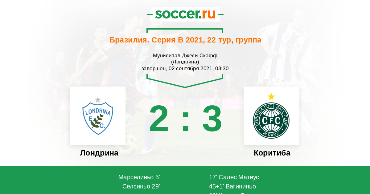 Протокол матча Лондрина против Коритиба