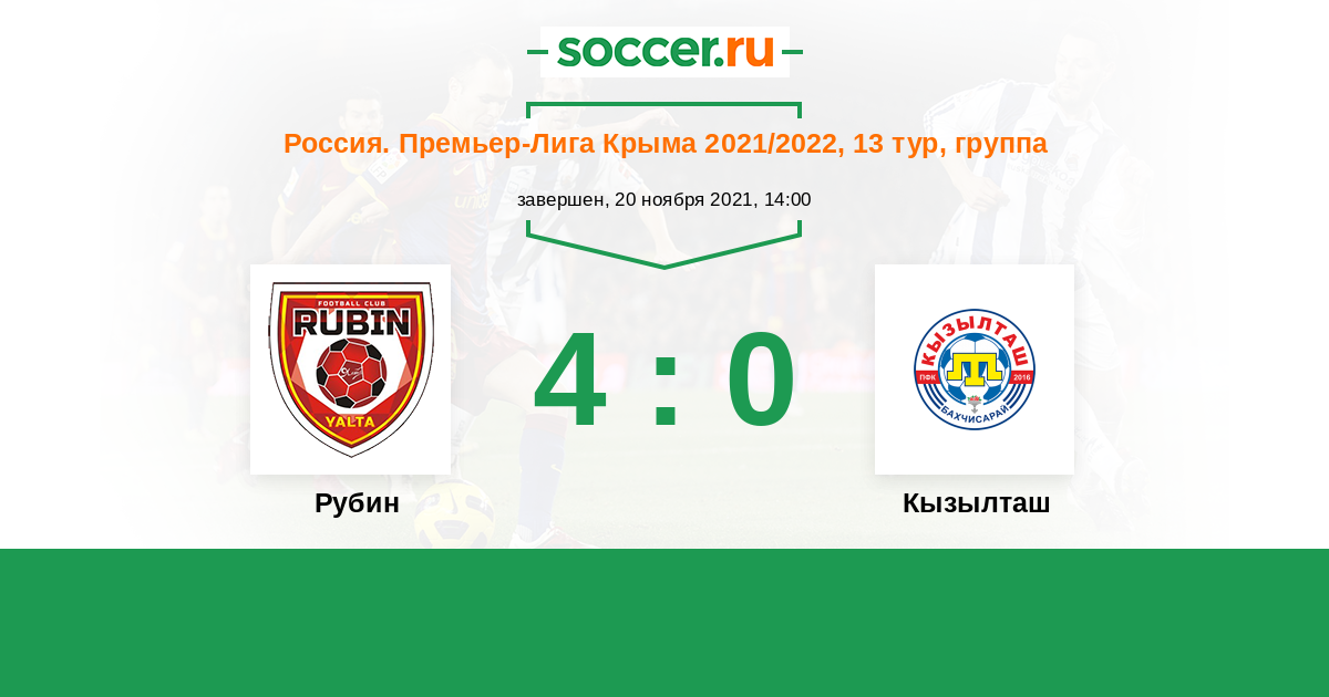 Россия. Премьер-Лига Крыма 09.04.2018 Рубин Логотип футбольный клуб Рубин (Ялта) 0:2 Логотип футбольный клуб Кызылташ (Бахчисарай) Кызылташ