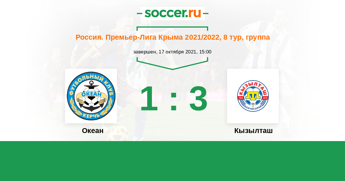Россия. Премьер-Лига Крыма 07.10.2017 Океан Логотип футбольный клуб Океан (Керчь) 0:0 Логотип футбольный клуб Кызылташ (Бахчисарай) Кызылташ