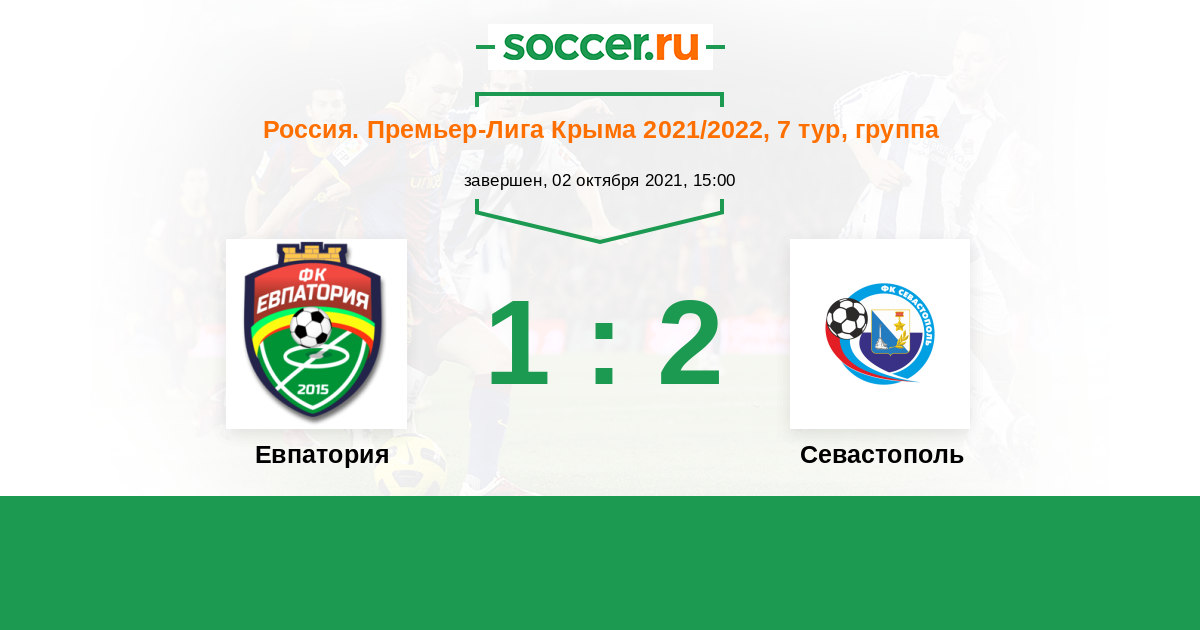 Россия. Премьер-Лига Крыма 02.06.2021 Севастополь Логотип футбольный клуб Севастополь 2:1 Логотип футбольный клуб Евпатория Евпатория