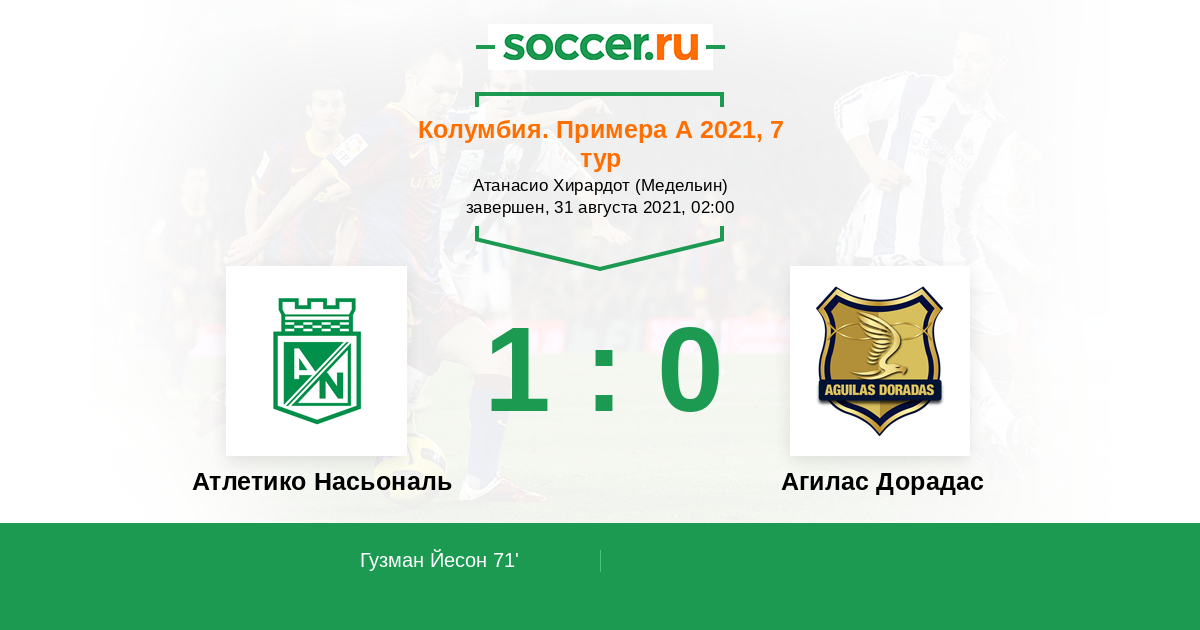 Протокол матча Атлетико Насьональ против Агилас Дорадас