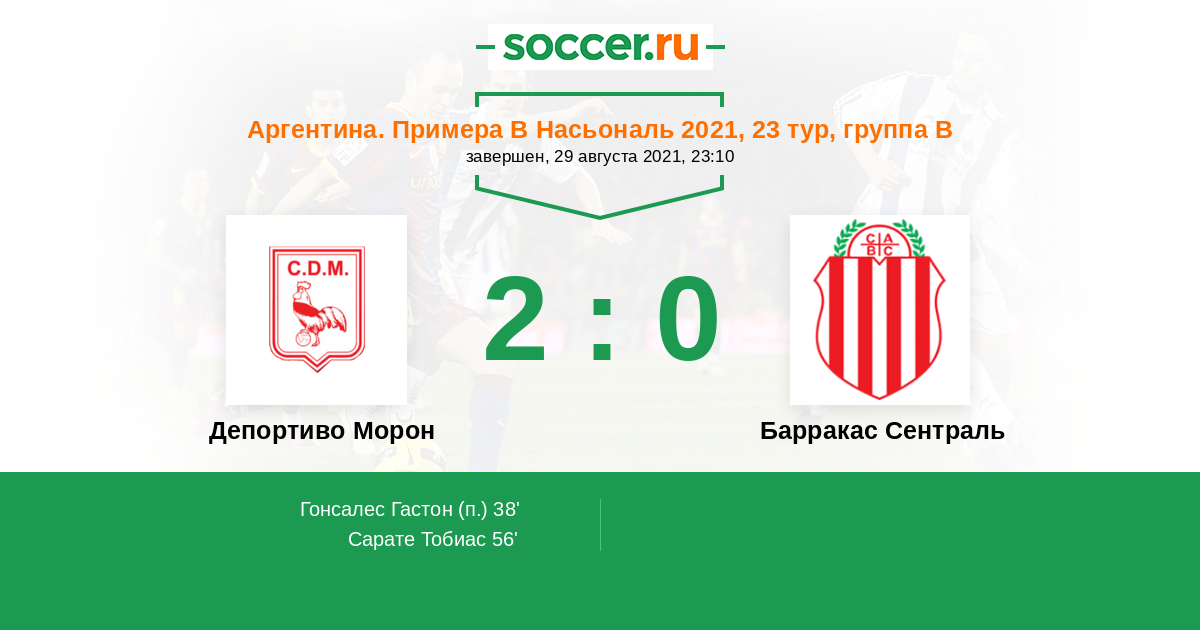 Протокол матча Депортиво Морон против Барракас Сентраль