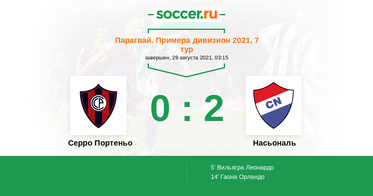 Протокол матча Серро Портеньо против Насьональ