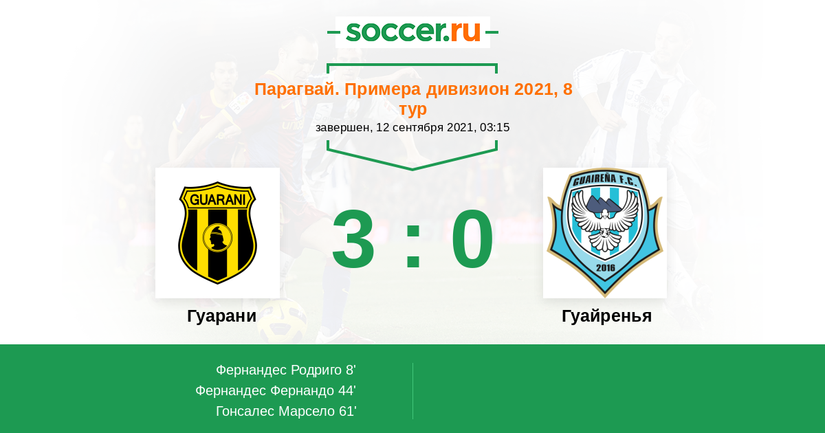 Протокол матча Гуарани против Гуайренья