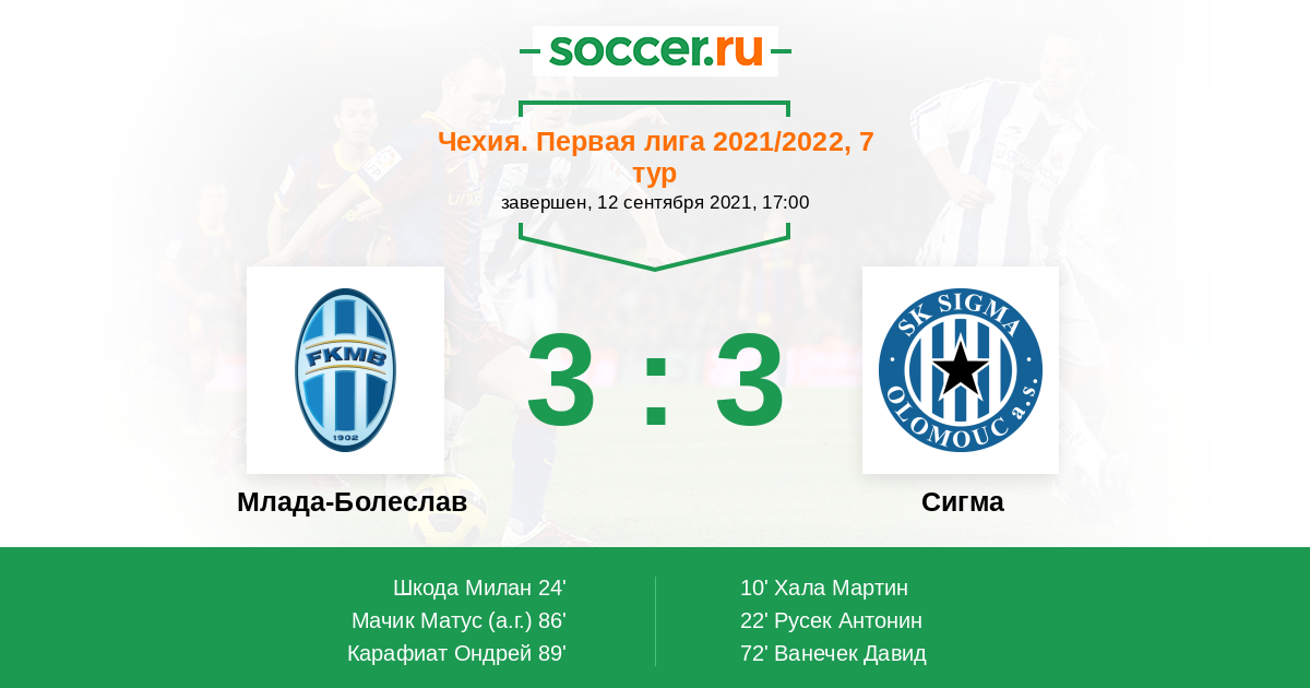 Протокол матча Млада-Болеслав против Сигма