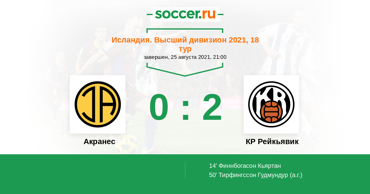 50' (0:2) Автогол Тирфингссон Гудмундур (20)