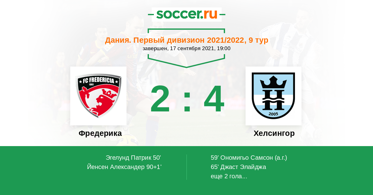 Протокол матча Фредерика против Хелсингор