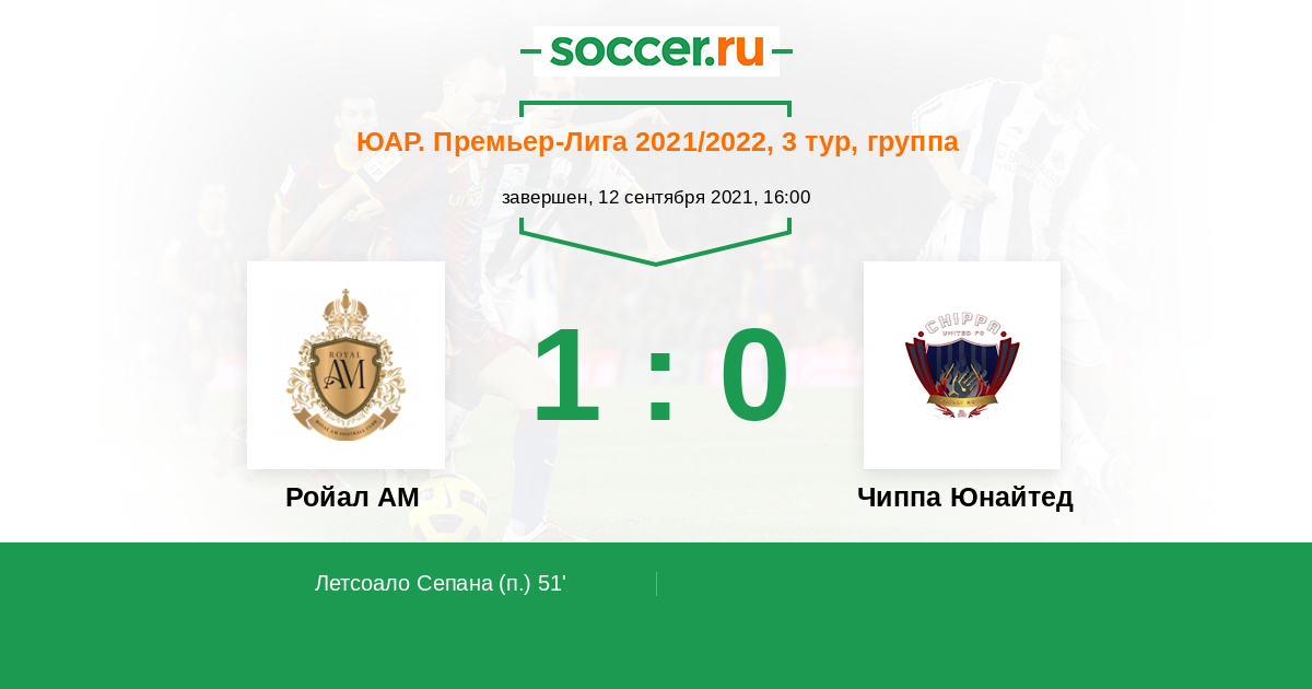 Протокол матча Ройал АМ против Чиппа Юнайтед