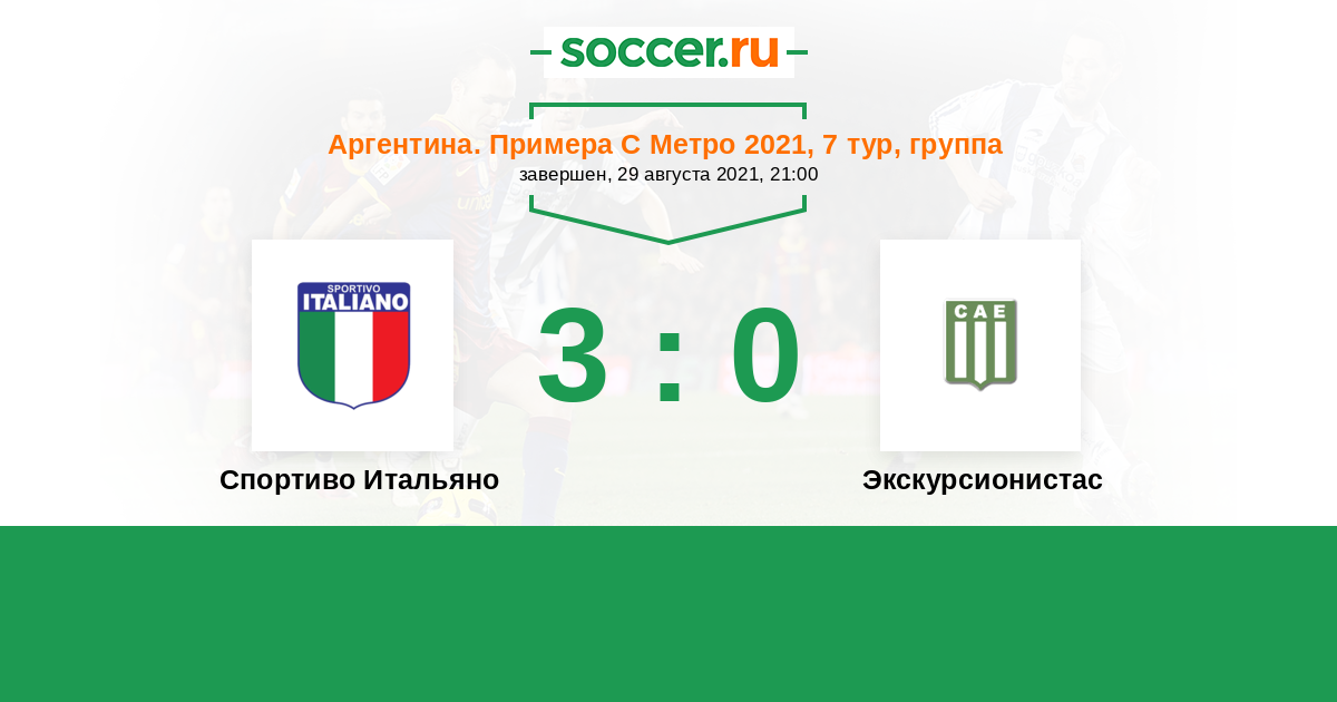 Аргентина. Примера С Метро 13.04.2021 Экскурсионистас Логотип футбольный клуб Экскурсионистас (Буэнос-Айрес) 2:2 Логотип футбольный клуб Спортиво Итальяно (Буэнос-Айрес) Спортиво Итальяно