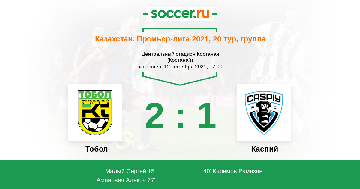 Протокол матча Тобол против Каспий