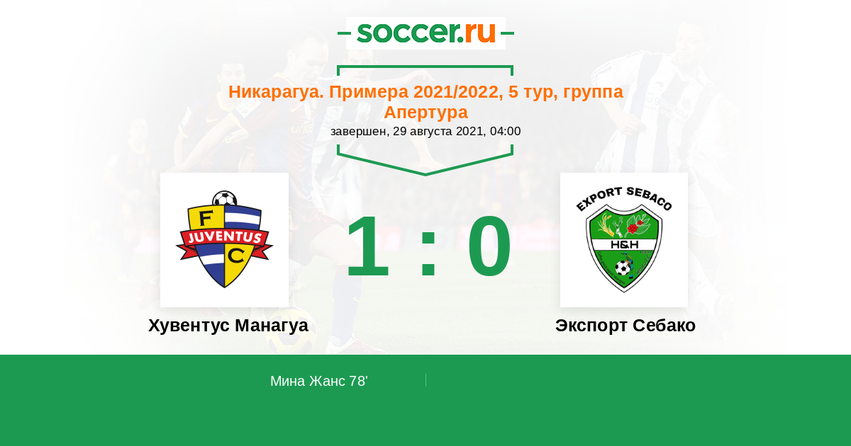 Протокол матча Хувентус Манагуа против Экспорт Себако