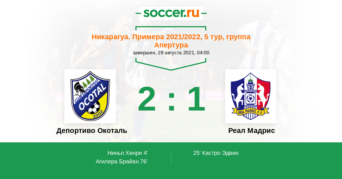 Протокол матча Депортиво Окоталь против Реал Мадрис