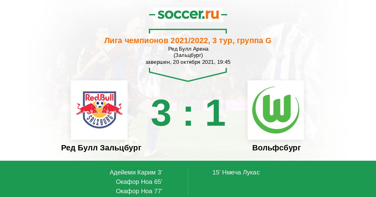 Протокол матча Ред Булл Зальцбург против Вольфсбург