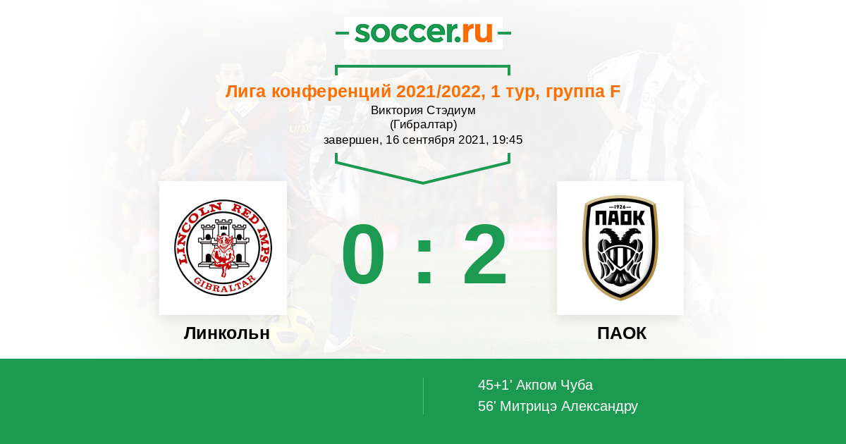 Протокол матча Линкольн против ПАОК