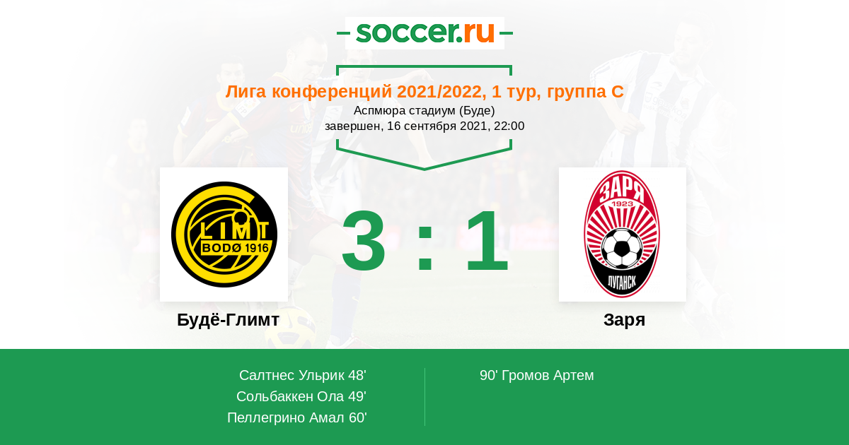 48' (1:0) Салтнес Ульрик (14) (Берг Патрик (7))