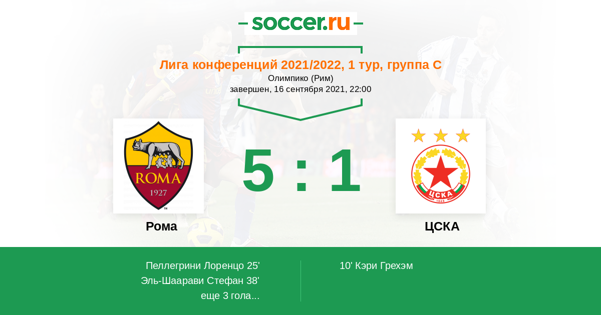 Конечно первые минуты очень мощно начали свою игру ЦСКА, хотели задавить Рому и на десятой минуте красивый гол всё таки влител в ворота римского клуба. Рома потихоньку пришла в себя после пропущенного мяча и начала поддавливать болгарскую команду ,заставляя их уходить в глубокую оборону . И на двадцать пятой минуте шикарным ударом Лоренцо Пеллегрини сравнивает счёт. Но футболисты ЦСКА не сдавались и выходили в хорошие контратаки ,которые могли закончится и взятиям ворот. За семь минут до перерыва всё таки свой момент не упустил один из самых лучших игроков Ромы Эль - Шаарави и забивает свои мяч в ворота ЦСКА. Ну а вторая половина второго тайма Рома после того как счёт был уже 3:1 , стали как говорится играть в своё удовольствие и довели счёт до разгромного , после того как у ЦСКА был удалён Яник на восьмидесятой минуте. Ну а на табло светится окончательный счёт матча 5:1 . И это уже серьёзно.