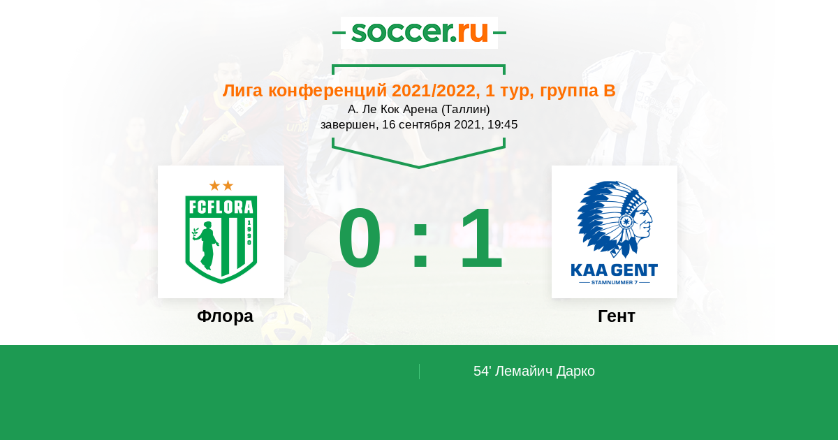 Протокол матча Флора против Гент