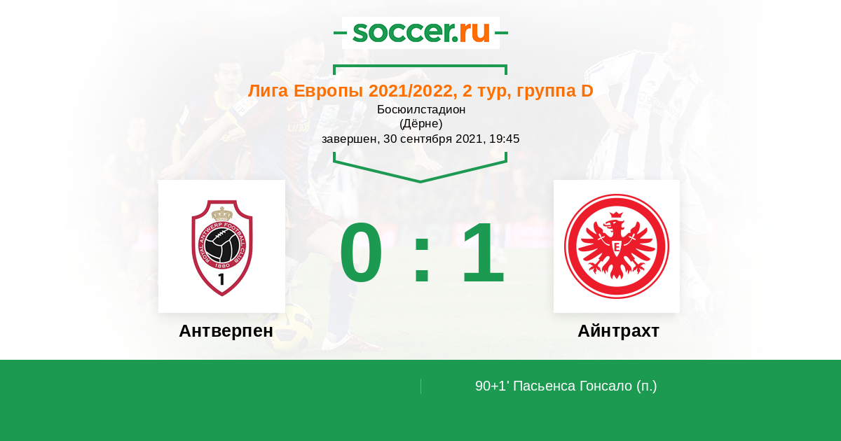 Протокол матча Антверпен против Айнтрахт
