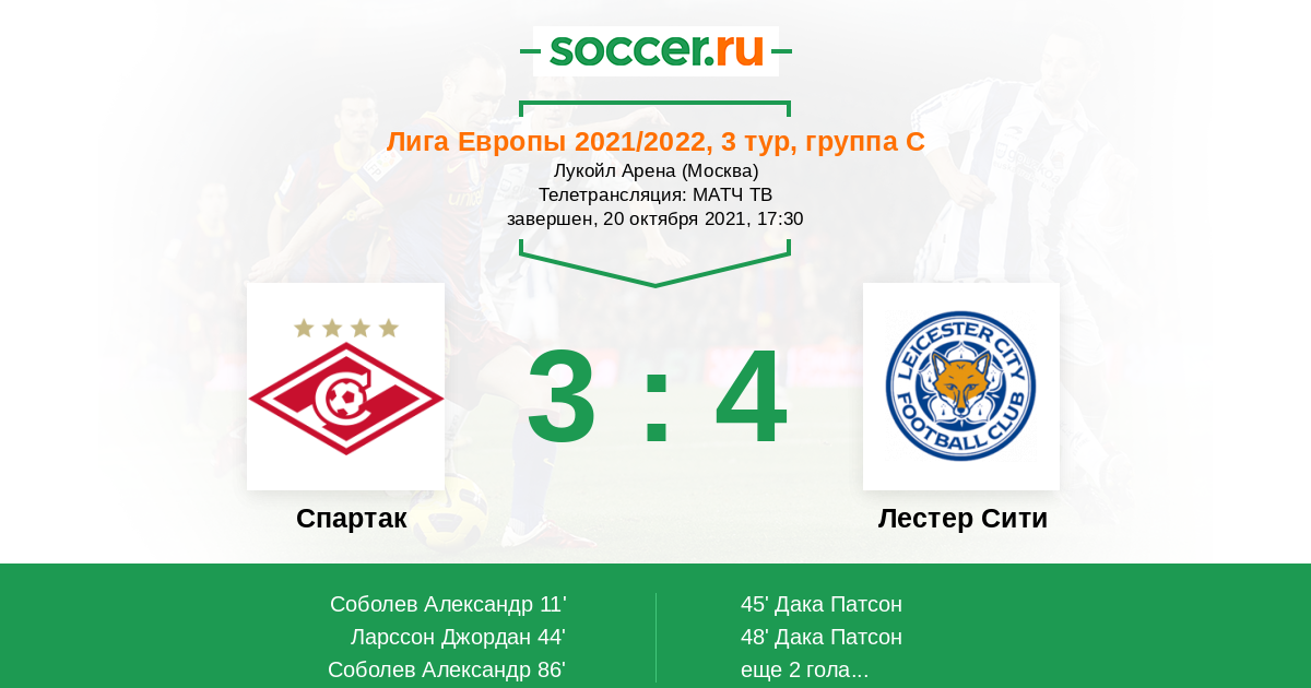 3) У Лестера было больше моментов, но это логично. Вся надежда на атаку Спартака сегодня.
