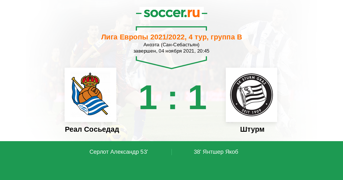 Протокол матча Реал Сосьедад против Штурм
