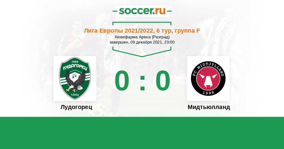 Протокол матча Лудогорец против Мидтьюлланд