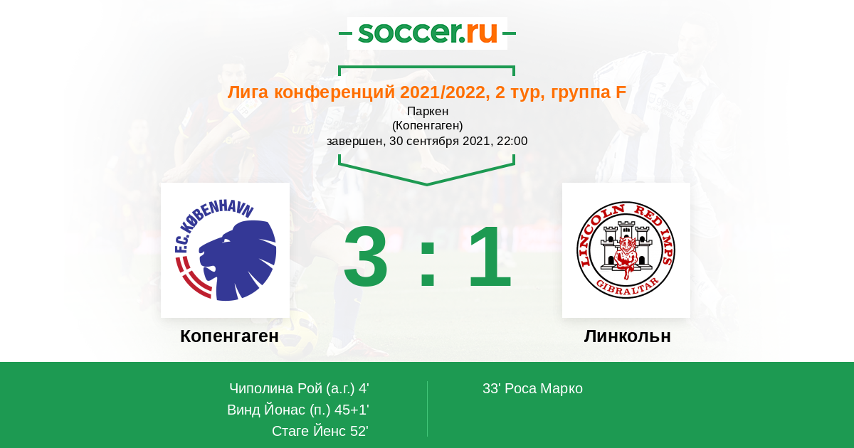 Протокол матча Копенгаген против Линкольн