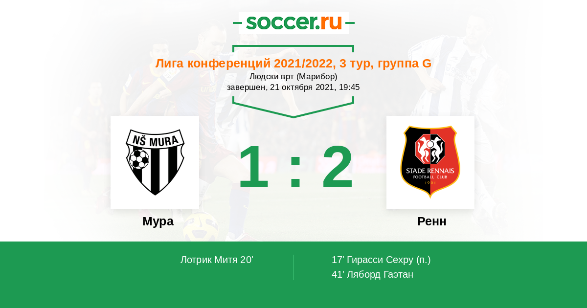 Протокол матча Мура против Ренн