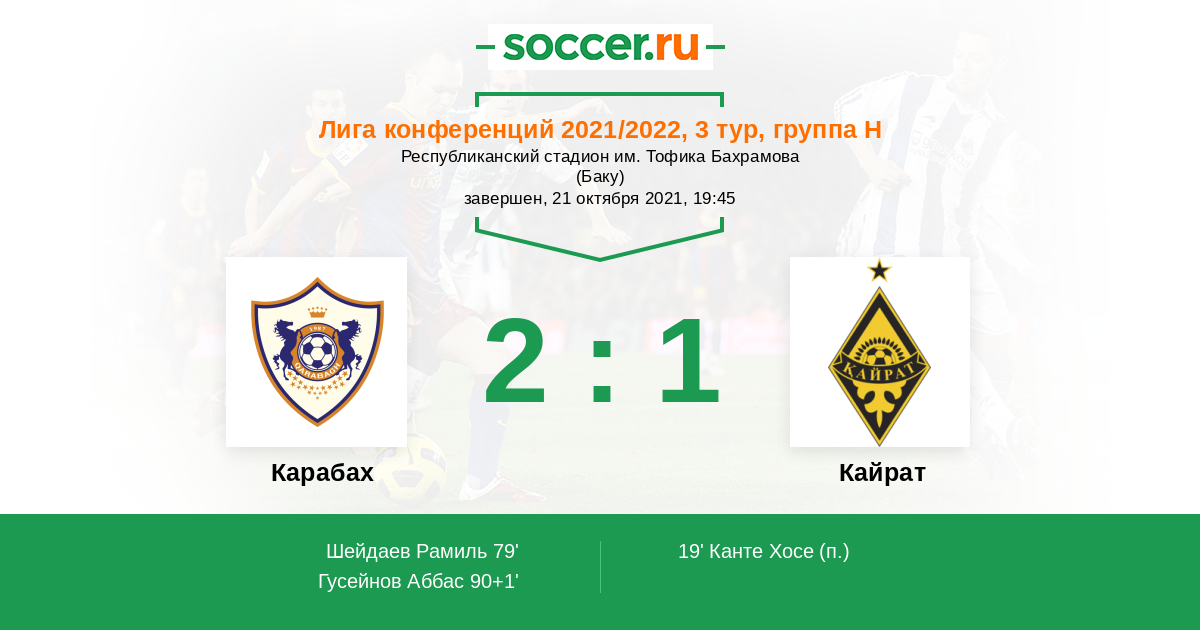 Протокол матча Карабах против Кайрат