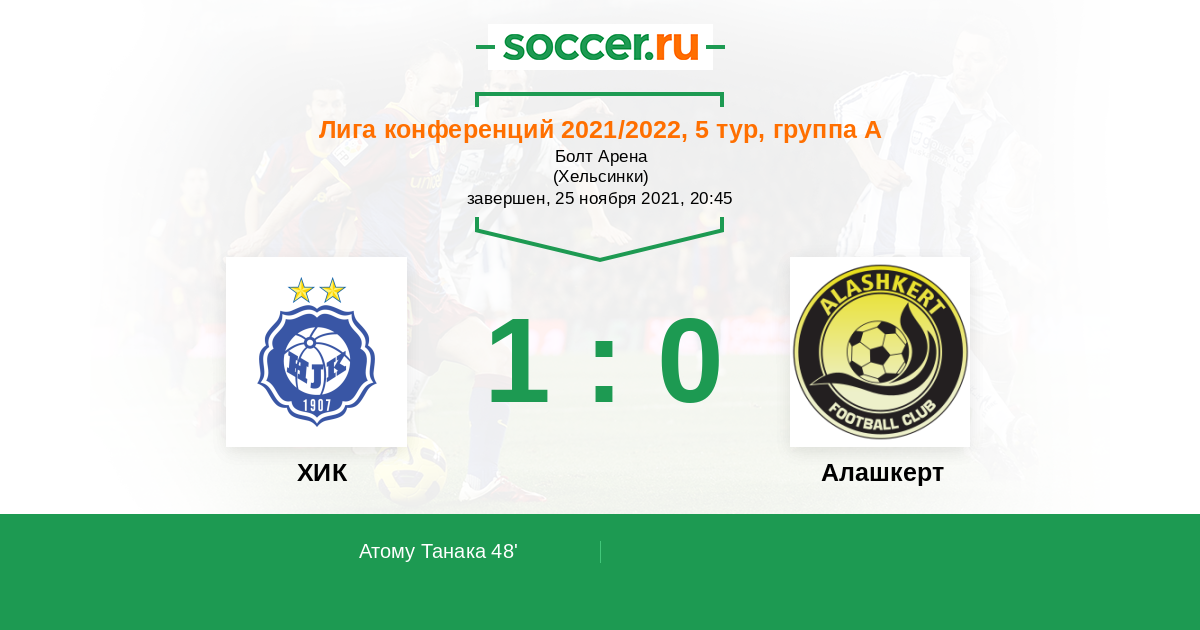 Протокол матча ХИК против Алашкерт