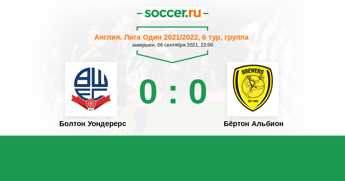 Протокол матча Болтон Уондерерс против Бёртон Альбион