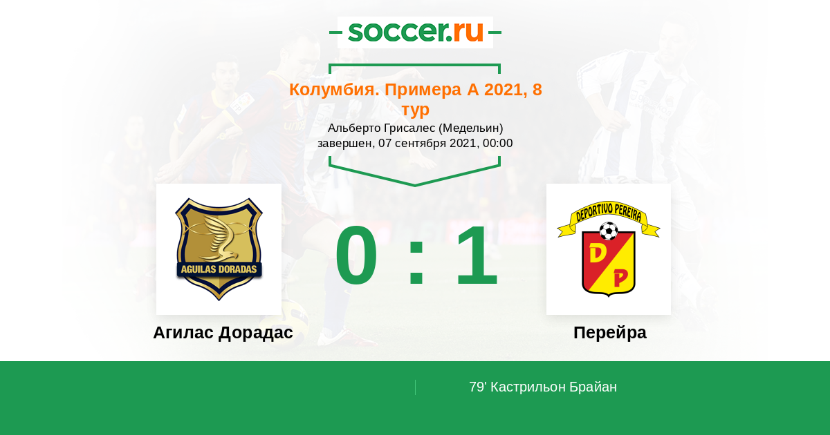 Протокол матча Агилас Дорадас против Перейра