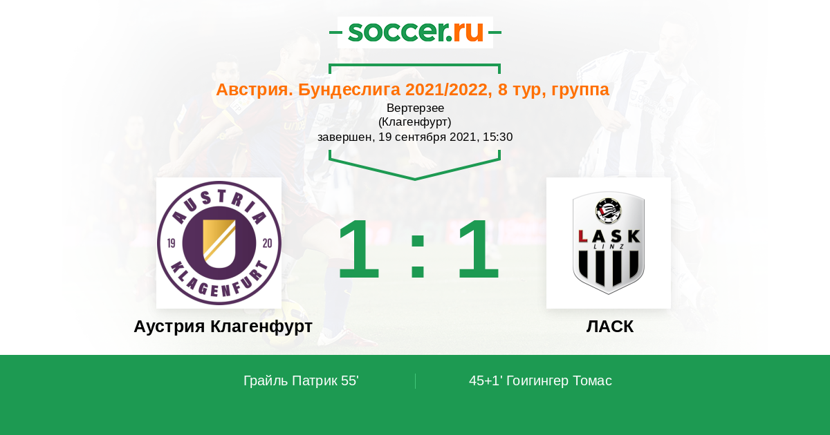 Протокол матча Аустрия Клагенфурт против ЛАСК