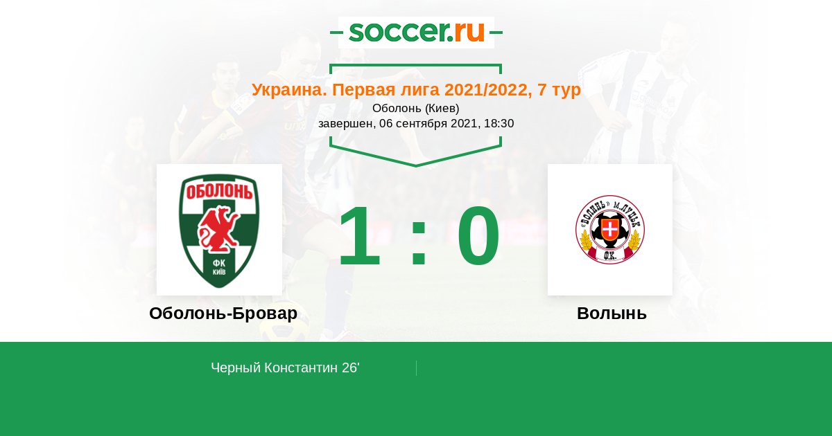 Протокол матча Оболонь-Бровар против Волынь