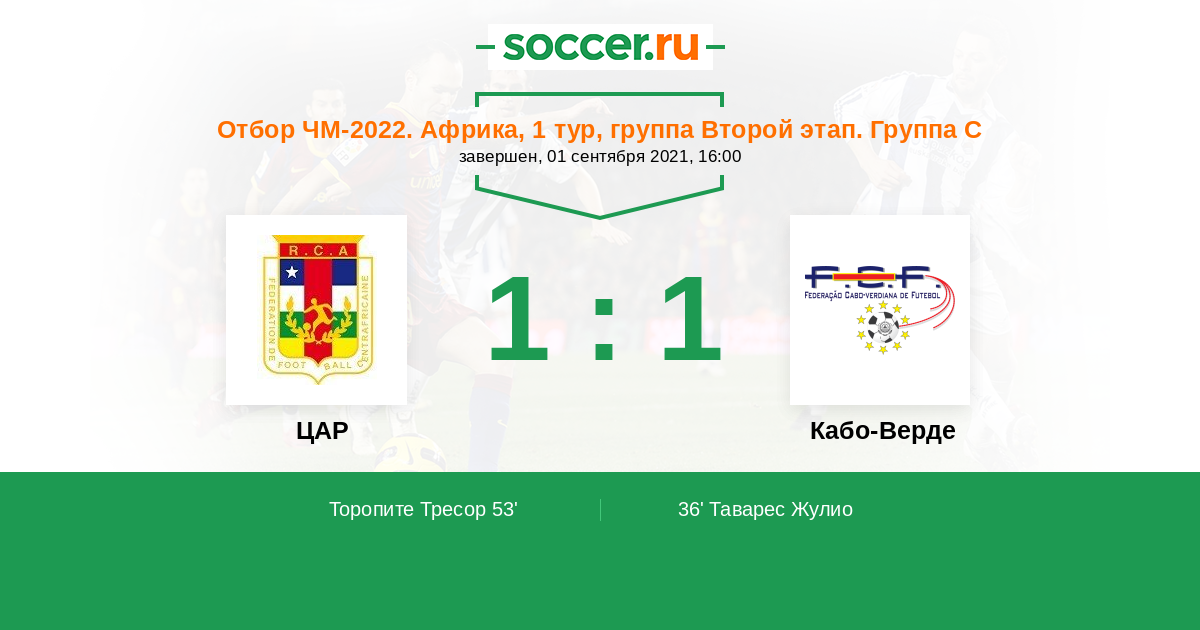 Протокол матча ЦАР против Кабо-Верде
