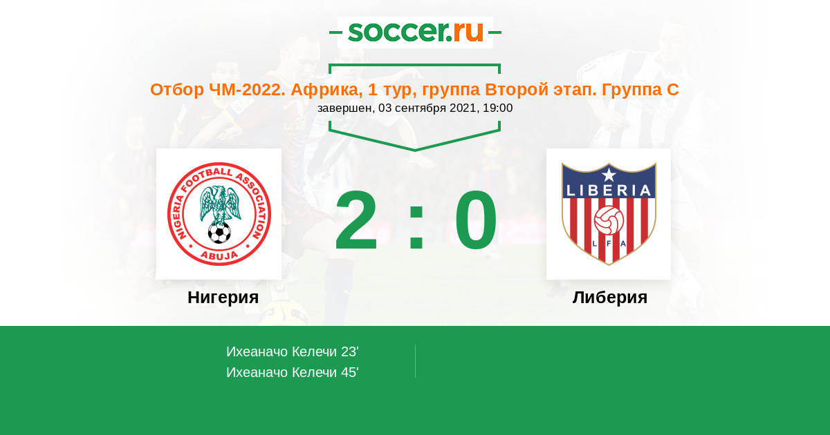 Протокол матча Нигерия против Либерия