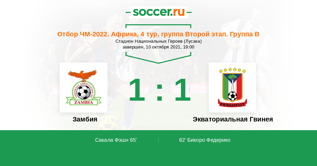Протокол матча Замбия против Экваториальная Гвинея