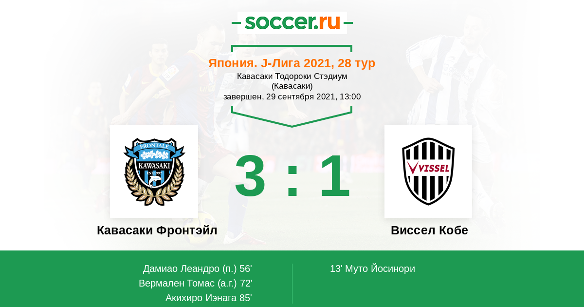 Протокол матча Кавасаки Фронтэйл против Виссел Кобе