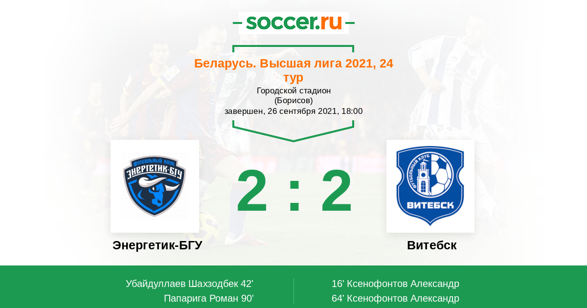 Протокол матча Энергетик-БГУ против Витебск