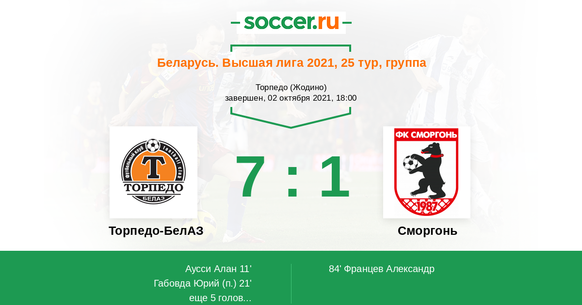Протокол матча Торпедо-БелАЗ против Сморгонь