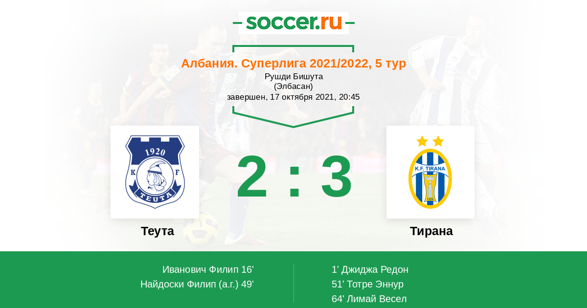 Протокол матча Теута против Тирана