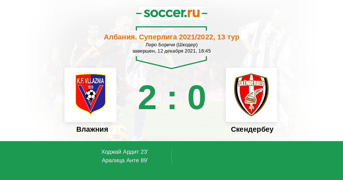Протокол матча Влажния против Скендербеу