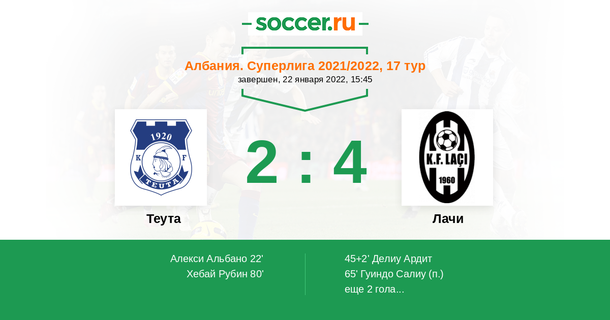 Протокол матча Теута против Лачи